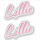 Nom de Lillie en écriture de caractères cursive rose. Deux copies.