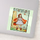 This is a beautiful reproduction of an antique children's book illustration, capturing the innocence and wonder of the classic Brothers Grimm tale, Little Red Riding Hood. The young heroine is depicted in a charming, slightly retro style, wearing a white spotted dress, bright red boots, and her famous hooded cape. The scene is framed by a tree and wildflowers, with a colorful butterfly adding a playful touch. The title "Little Red Riding Hood" is set in a decorative, vintage font at the top. This artwork is ideal for nursery décor, teacher gifts, book lovers, and anyone looking for a unique, nostalgic design that celebrates literary classics.