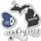 Feuille d'autocollants du Michigan. Une feuille de 3 autocollants différents, avec des modèles Michigan. Chaque autocollant est découpé en dés et peut être enlevé séparément, de sorte que vous pouvez les coller sur différents articles. Design 1 : Coeur avec le drapeau de l'état et l'abréviation de l'état. Design 2 : Police par script avec drapeau d'état mélangé dans un coeur. Conception 3 : Plan d'état avec le texte 'appartenance ♥'. Si vous aimez l'état, ceux-ci sont parfaits pour montrer cet amour, en les collant sur votre voiture, ordinateur portable, téléphone, fenêtre ou toute autre surface lisse!