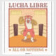 Bold lucha libre mask artwork with retro sports style and an all or nothing quote inspired by Mexican culture.