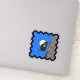 Cet autocollant vinyle représente une chouette noire aux yeux bleus assise dans un arbre sur un ciel nocturne bleu foncé avec une lune jaune et des étoiles dans une bordure noire ondulée.