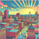 Art rétro ai avec des vibes vintages colorées Madison, Wisconsin Capitol et lac au coucher du soleil garde souvenir.