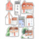 Jolie aquarelle peinte de maisons et de cottages anglais. Des autocollants mignons pour rendre tout plus agréable.