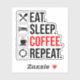 Manger. Dormir. Café. Recommencer. Cet accessoire de café amusant est un grand cadeau pour un amoureux du café. Parfait pour les hommes et les femmes buveurs de café et les accros du café qui ont plusieurs tasses ou tasses de café le matin. Aimez-vous boire du café, du cappuccino, des lattes ou de l'espresso au petit-déjeuner ? Êtes-vous accro au café et à la caféine ? Si vous ne pouvez pas aller une journée sans café, alors c'est pour vous !