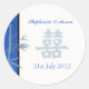 Un autocollant mariage double bonheur bleu asiatique qui peut être entièrement personnalisable. Les invitations de mariage et enregistrer les cartes de date sont disponibles dans cette galerie.