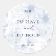 Ajoutez une touche romantique aux détails de votre mariage avec cet autocollant rond bleu poussiéreux avec l'expression intemporelle "AVOIR ET TENIR". Parfait pour sceller des enveloppes, des ballotins, des sacs de bienvenue ou de petits cadeaux. Un design minimaliste qui s'intègre à des thèmes mariages élégants, classiques ou côtiers. Customisez avec vos noms et votre date ou laissez-le tel quel pour un détail de finition polyvalent.