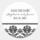 Autocollant mariage en monogramme damassé noir et blanc qui peut être utilisé comme sceau d'invitation.