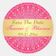 Ce 1,5" de diamètre rond enregistrer la date autocollant mariage en rose chaud et or a un motif de médaillon circulaire avec des rouleaux dorés ornés et des points dessus qui correspondent aux invitations de mariage d'inspiration indienne montré ci-dessous. Si vous désirez des modifications ou si vous avez besoin d'aide sur le texte, envoyez un courriel à niteowlstudio@gmail.com.