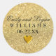Un très joli et pétillant arrière - plan en or fournit le cadre parfait pour cet autocollant mariage. Les prénoms de mariée et de mariée sont écrits dans un script formel et élégant. Leur nom de famille est écrit dans un texte plus grand et plus simple et leur date de mariage est en dessous. Petit coeur d'or fournit équilibre et nuance romantique. Une façon glamour de sceller les sacs de faveur de mariage, les boîtes à gâteaux mariages et les enveloppes de notes de remerciement. Tout le texte est facile à modifier. Vous pouvez également choisir de nouvelles polices, modifier la taille et la couleur du texte. Ne voulez pas le coeur, supprimez-le. Il est facile d'utiliser ce modèle autocollant mariage or.