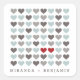 La palette de couleurs bleu, gris et ardoise est à la mode et présente une grille contemporaine de coeurs entourant les deux coeurs rouges spéciaux qui représentent la mariée et le marié. Un design mariage moderne, avec un mélange contemporain de format et de typographie pour le style, simple, mais frappant. Les éléments de coordination de la collection "Two Hearts" comprennent les invitations, les cartes de réception, les cartes rsvp, les autocollants, les étiquettes et les étiquettes de faveur.