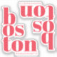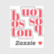 Montrez votre amour pour Boston, Massachusetts avec cet autocollant typographique moderne accrocheur. Le design comprend le mot "Boston" divisé en trois lignes en lettres minuscules décoratives et audacieuses, surlignées de rouge vif. Les options de texte personnalisables dans une police sans serif élégante et fine ajoutent une touche subtile et contemporaine, ce qui en fait un outil parfait pour la personnalisation. Idéal pour vos vacances, votre déco d'ordinateur portable, votre accent décoratif ou votre personnage de marque élégant pour un événement ou une entreprise de Boston. Que vous soyez un Bostonian fier, un visiteur fréquent, ou simplement un fan de cette ville emblématique, cet autocollant unique apporte une touche moderne à votre amour pour Boston.