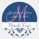 Carré, Monogramme rose, Étiquettes Merci bleu marine et blanc Mariage damassé. Mariage damassé Privilégie Les Stickers Merci. Présentation par Elke Clarke. Carte graphique sous licence. Vous avez besoin d'aide pour coordonner les articles "jour de" mariage pour votre mariage ? Veuillez contacter luxuryweddinginvitations@gmail.com