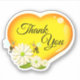Grand coeur d'amour jaune et orange fait de miel doux. Au fond du coeur se trouvent trois jolies fleurs blanches et deux abeilles jaunes et noires qui collectent du pollen dans de minuscules seaux. Dans le script noir à travers le coeur sont les mots Merci.