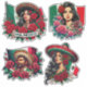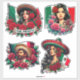 Mexicaine Fille et Mexicaine portant un portrait de sombrero Mexique Drapeau couleur illustration autocollants