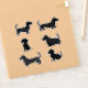 Profitez de l'ajout de charme canin à vos effets avec ces stickers mignons en forme de dachshund. Il y a six silhouettes dachshund sur la feuille, dont quatre en noir clair et deux avec un motif subtil. Idéal pour les propriétaires de doxie et autres amoureux de les chiens.