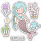Sticker Mignonne Sirène Whimsical Girl Nom personnalisé