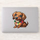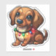 Sticker Mischievous Dachshund enveloppé dans les lumières