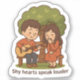 Célébrez des émotions tendres avec cet adorable autocollant montrant un couple timide partageant un moment sucré sous un arbre — un garçon jouant de la guitare et une fille timide rougissant. La légende "Les coeurs timides parlent plus fort" capture parfaitement le langage silencieux de l'amour. Il s'agit d'un autocollant de haute qualité, disponible dans toutes les tailles sans aucune perte de clarté ou de détail. Qu'il soit utilisé sur des ordinateurs portables, des carnets ou des cadeaux, il apporte chaleur et charme partout où il va.