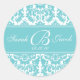 Faites de cet autocollant le vôtre ! Tout le texte peut être changé à votre information Bleu et blanc autocollant monogramme damas.