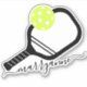 Nom personnalisé Sticker Coupe Contour avec Pickleball Paddle et Monogramme de balle dans une Girly, Feminine, Elegant Calligraphy Script Font est disponible en plusieurs tailles pour votre ordinateur portable, bouteille d'eau, collection d'autocollants ou comme faveurs et cadeaux pour une fête d'anniversaire de tennis.