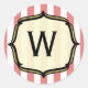 Un autocollant sur le thème du cirque avec un arrière - plan de rayures rouges et blanches défraîchies. Personnalisez avec votre premier cadre de support doré à l'intérieur souligné en noir. Invitations assorties disponibles chez Jill's Paperie.