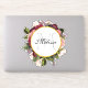 Un décalque de vinyle avec un cercle qui a une fausse bordure en feuille d'or qui est superposé sur un joli bouquet floral de roses, oeillets et autres fleurs. Personnalisez avec votre nom et monogramme à l'intérieur du cercle.