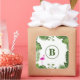 This design objets a green leaves background with a monogram in the center. Add your own initial to this product to customize it.