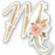 "Monogramme Initial M Parties scintillant Or Peony Rose Floral Formé Stickers Transparent." Élégamment créé à partir de parties scintillant en or dimensionnel dans une écriture manuscrite, lettre "M" décorée de fleurs de pivoine rose poussiéreuse et pêche avec feuilles de tonalité de terre rouille, sauge muettée et feuillage vert de forêt. Art peint par Audrey Jeanne Roberts, artiste et designer de renommée internationale. Droit d'auteur .