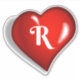 Monogramme R, texte blanc sur coeur rouge rubis