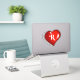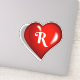 Sticker Monogramme R, script blanc sur coeur rouge rubis