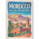 Morocco retro vector travel design. Morocco is a vibrant North African country known for its colorful medinas, sweeping desert landscapes, and rich cultural traditions. From the bustling markets of Marrakech to the vast Sahara and scenic Atlas Mountains, it offers a diverse and immersive travel experience.