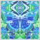 Sticker dans un motif batik numérique d'un grand papillon bleu et turquoise sur un arrière - plan médaillon arabesque orné, en bleu cobalt, turquoise et vert jade