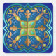Joli autocollant motif médiéval carré en or, bleu, vert et cuivre.