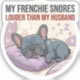 A humorous design about the famously loud snoring of French Bulldogs and the owners who love them anyway.
