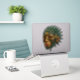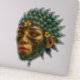 "The Vision Keeper" brings fantasy to life with this futuristic depiction of a mystical guardian, who's all knowing eyes glow intensely. Gold laced turquoise plates, adorned with yellow flowers, form a helmet around the beautiful face. This graphic art will make a unique statement sticker for your items. Perfect for laptops, game consoles, skateboards, water bottles and more!