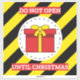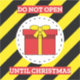Illustration d'une simple boîte cadeau rouge avec le texte "Ne pas ouvrir avant Noël", et arrière - plan rayé noir et jaune. Les cadeaux sont le meilleur moyen de donner la surprise à votre famille et à vos amis. Ce design est bon pour être imprimé sur un autocollant ou un emballage cadeau pour les cadeaux mis sous le sapin de Noël.