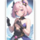 Héroïne brillante en armure noire et violette irisée avec reflets dorés. Ses cheveux roses brillent sur un fond de nuit céleste, parfait pour les fans de personnages d'anime frappants.