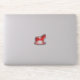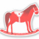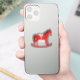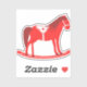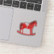 Cet autocollant de Noël en forme impressionnante présente une image art numérique d'un mignon cheval à bascule de style scandinave. Le cheval est rouge avec une crinière rouge foncé, la queue et les sabots. Le cheval sympathique sourit. Il a une selle blanche et des rois avec de jolis motifs de style Scandi rouge sur la selle, y compris le soleil, la lune et les étoiles, les coeurs et les fleurs. La base du cheval rocking est rouge et est couverte de feuilles blancs. Le design a été inspiré par le cheval suédois Dala.