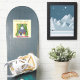 Décal de vinyle avec une aquarelle fantaisie. Un jeune enfant en pyjama et son chatte chatte regardant devant leur fenêtre le soir de Noël. Le Père Noël et ses rennes volent le ciel nocturne sous forme de silhouette avec une grande lune illuminant leur chemin.