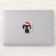 Sticker de Noël amusant. Un mignon chien blanc et bronzé portant un chapeau de Père Noël. Ce sticker vinyle est résistant à l'eau, idéal pour les ordinateurs portables, bouteilles d'eau, fenêtres de voiture et plus encore.
