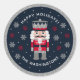 Un design de casse-noix moderne et amusant avec les mots joyeuses fêtes décore cet autocollant. Personnalisez-le avec votre nom pour vos cadeaux de Noël. Conçu pour vous par Blackberry Boulevard.