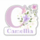 Personnalisez n'importe quel article avec un nom et une initiale avec un autocollant de découpe Floral Design. Le nom de l'exemple est Camellia.
