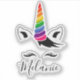 Connais-tu quelqu'un qui aime les licornes ? L'autocollant Glam Rainbow Unicorn Name conçu par Enchantfancy Design Company présente le contour du visage d'une licorne avec des cils glamour, des oreilles, un touft de cheveux et une fabuleuse corne de licorne arc-en-ciel. Personnalisez avec votre choix de nom ! Il fait un grand cadeau pour l'amant de licorne dans votre vie.