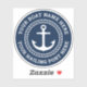 Sticker avec ancre à l'intérieur d'une bordure de corde avec nom de bateau personnalisable et port de voile enroulé autour de la bordure circulaire. Couleur et police personnalisables.