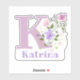 Personnalisez n'importe quel article avec un nom et une initiale avec un autocollant de découpe Floral Design. Exemple de nom : Katrina.
