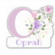 Personnalisez n'importe quel article avec un nom et une initiale avec un autocollant de découpe Floral Design. L'exemple de nom est Oprah.