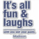 "Tout est amusant et riant jusqu'à ce que vous mouilliez votre pantalon". Remplacez le champ de texte par ce que vous voulez. Voir mon magasin pour plus d'articles avec ce design.