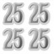 Quatre stickers de contour argenté numéro 25 pour anniversaire ou anniversaire.