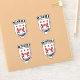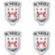 Conçus en Irlande, ces autocollants montrent le nom de famille en anglais avec sa traduction irlandaise Gaeilge en dessous et la signification du nom sous les armoiries.