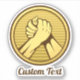 Médaille ronde en or avec deux mains en lutte au bras. Texte personnalisé.